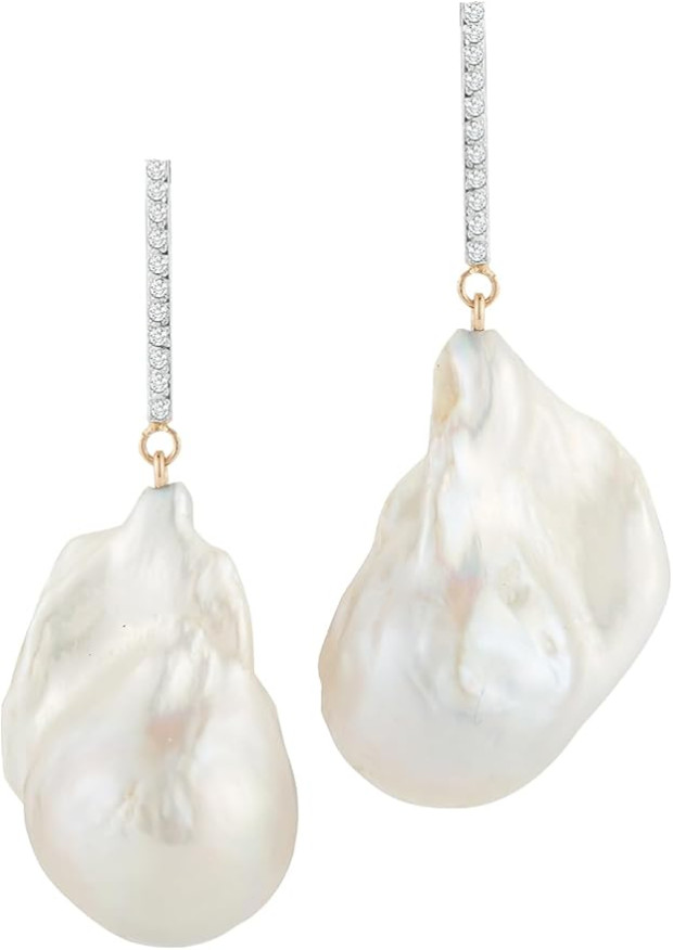 Šie 14 karātu dzeltenā zelta auskari ar baroka pērlēm un dimantiem ir īsts izteiksmīgas elegances iemiesojums. To unikālais dizains apvieno dabas radīto skaistumu ar klasisku greznību, radot rotu, kas nepaliks nepamanīta. Izgatavoti no 14 karātu dzeltenā zelta, auskari ir rotāti ar 20–22 mm iespaidīgām baroka pērlēm, kas katra ir neatkārtojama savā formā un mirdzumā. Šie auskari ir perfekta izvēle tiem, kas vēlas piešķirt savam stilam greznumu un unikālu akcentu.