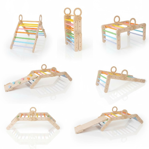 Transformējamās mājiņa ar šūpuli un slidkalniņu no ActiveToys! Pārvērtiet savas mājas par rotaļu paradīzi ar mūsu multifunkcionālo trijstūri, kas garantē ne tikai jautrību, bet arī attīsta bērnu prasmes un iztēli! Piemērots bērniem no 6 mēnešiem līdz 3 gadu vecumam. Izgatavots no bērza saplākšņa, apses koka pakāpieni, eko krāsas. Cena atkarīga no izvēlētās komplektācijas.