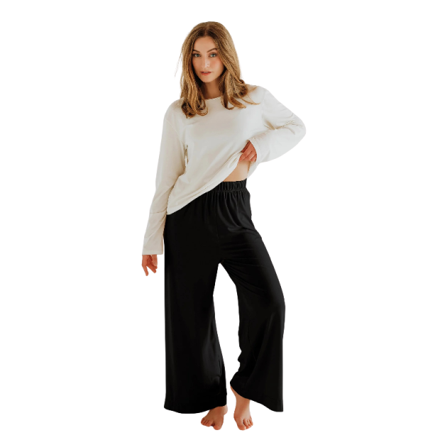 MUTA augstās jostasvietas bambusa bikses ir radītas, lai nodrošinātu nepiespiestu un universālu komfortu.