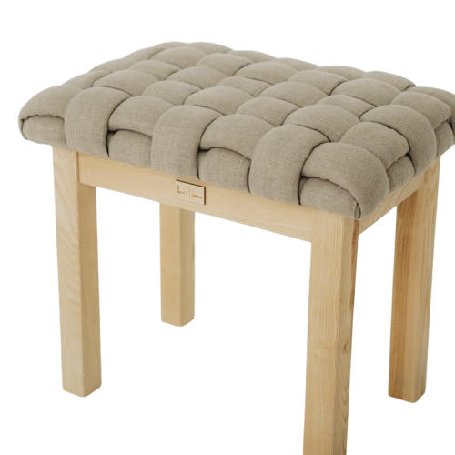 Oša koka soliņš ar pītu, polsterētu virsmu no lina auduma. Izmērs 40 x 60 cm, augstums 45 cm. Krāsu un izmēru iespējams pielāgot jūsu vajadzībām. Lielisks interjera akcents jūsu mājoklim vai birojam. Roku darbs, kas radīts ar īpašu rūpību un mīlestību.