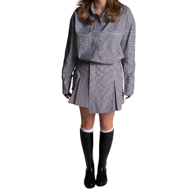 Brīva piegriezuma kokvilnas krekls ar nolaidenu plecu līniju, kas veido mūsdienīgu un nepiespiestu siluetu. Tas ir ērti un vienkārši kombinējams un viegli valkājams.