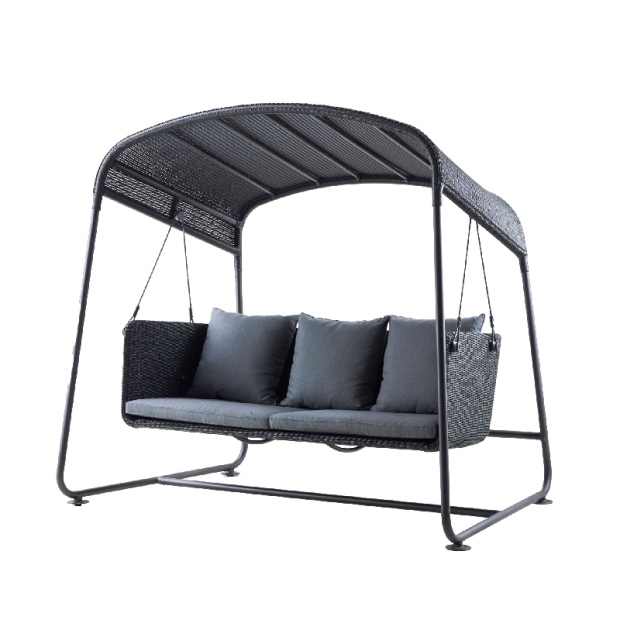 Cave šūpuļkrēslam ir mūsdienīgs un izteiksmīgs dizains, kas apvieno komfortu ar arhitektoniski iedvesmotu formu.
