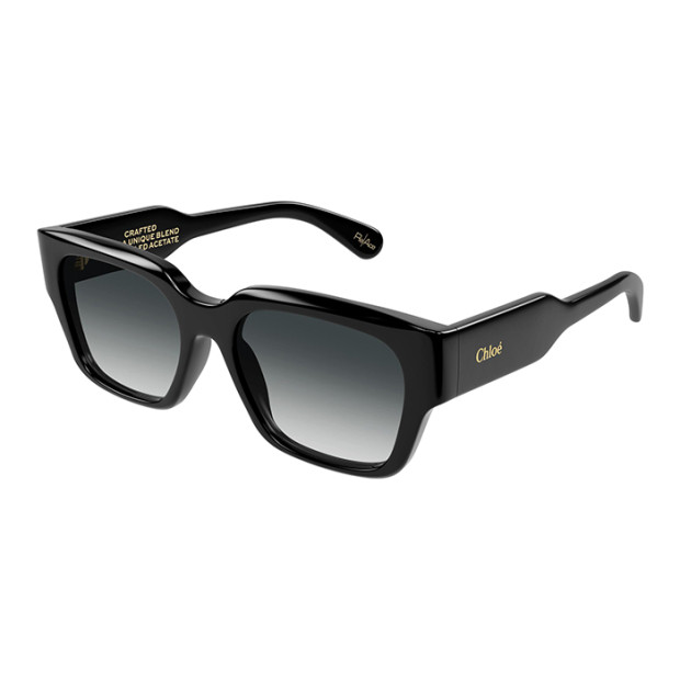 Izceliet savu eleganci ar CHLOÉ CH 0190S Black saulesbrillēm. Klasisks, masīvs melns ietvars ar izsmalcinātu zelta zīmola logotipu uz kājiņām un modernām dūmakainām lēcām. Perfekts luksusa akcents jūsu tēlam!