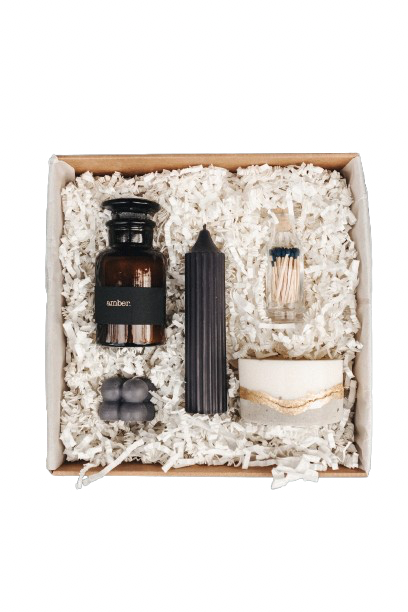 Amber candle ar burvīgo dzintara smaržeļļu. Vaska svece uz betona pamatnes ar dekoratīvo zelta maliņu. Rievota, pelēka vaska stāvsvece. Pelēka vaska svece mazs burbulis. Sērkociņi stikla pudelītē ar zēveli. Iepakojuma pildījums atšķiras no attēlā redzamā. Dāvanas pildījums - zīdpapīrs.