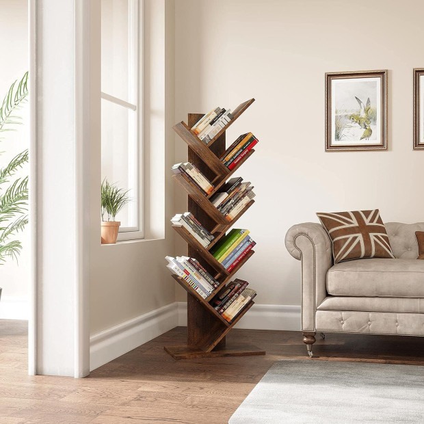Pievienojiet savam interjeram eleganci un kārtību ar YITAHOME mākslinieciska dizaina grāmatu plauktu, kas apvieno estētiku ar funkcionalitāi (25D x 51W x 141H cm). Tā unikālā, koka iedvesmotā forma kalpo ne tikai kā praktisks grāmatu un žurnālu plaukts, bet arī kā izsmalcināts mākslas elements. Plašie nodalījumi nodrošina pietiekami daudz vietas jūsu iemīļotajām grāmatām, romāniem, avīzēm un pat mūzikas kolekcijai, vienlaikus saglabājot kompakto dizainu. Šis praktiskais grāmatu plaukts būs ideāls papildinājums jūsu mājoklim.