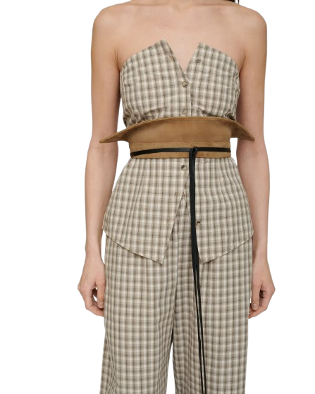 Rafinēts un teksturēts aksesuārs no Nanushka – EVORA josta ir izgatavota no mīksta brūna zamša ar ādas detaļām, atspoguļojot kolekcijas niansēto gaismas un tekstūras saspēli. Tā radīta ērtai valkāšanai un vieglai kombinēšanai slāņos, piešķirot jebkuram tērpam elegantu un daudzpusīgu akcentu.