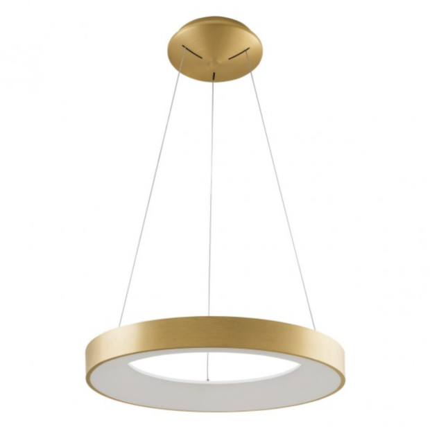 Griestu lampa Italux Giulia kolekcija, poļu ražotājs. Lampas korpuss izgatavots no metāla un nokrāsots zeltītā krāsā, akrila difuzors. Kopējais lampas augstums 120cm un diametrs 48cm. Iestrādātas LED diodes ar kopējo jaudu 40W. Izstaro silti baltu gaismu 3000K, gaismas plūsma 2200lm. Paredzēta uzstādīšanai iekštelpās, aizsardzības pakāpe IP20.