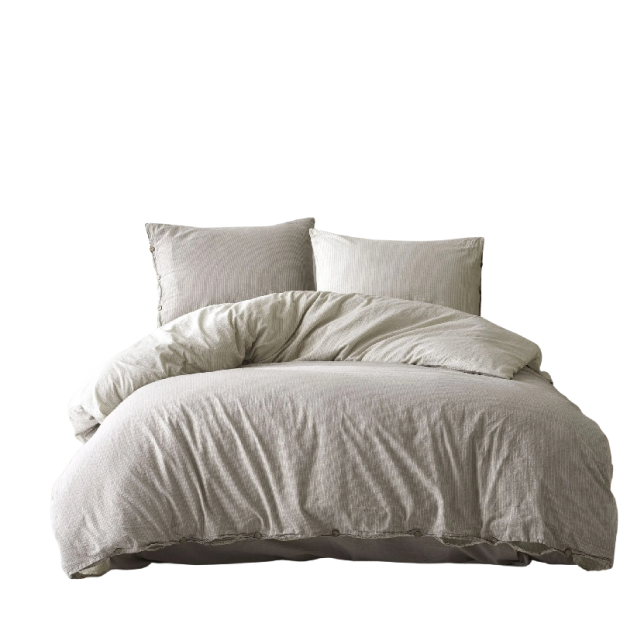Chambray Cottage gultas veļas komplekts ir elegants un mājīgs kokvilnas komplekts siltos toņos ar smalkām strīpām, kas piešķir interjeram dabisku un harmonisku noskaņu. Cena €79.00 – €92.00