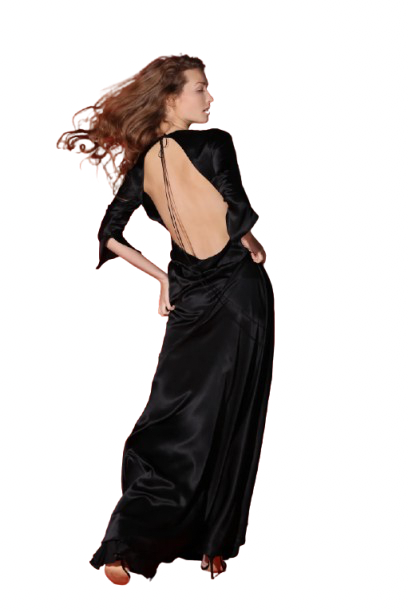 Jagger maxi kleita, kas eleganti slīd līdz pat grīdai, ir izgatavota no 100% tīra zīda, un tās piegriezums izsmalcināti izceļ ķermeņa aprises. Dziļi izgrieztā atvērtā mugura un īpaši smalkā lente aizmugurē rada pavedinoši juteklisku koptēlu, kamēr klasiskā, slēgtā priekšpuse nodrošina līdzsvaru. Pagarinātās piedurknes ar šķēlumiem ir viegli stilizēt, tās atlokot virs elkoņiem. Kombinē kleitu ar augstpapēžu apaviem vakara iznācienam.