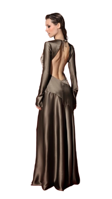 Jagger maxi kleita, kas eleganti sniedzas līdz pat grīdai, ir izgatavota no 100% tīra zīda, un tās piegriezums izsmalcināti izceļ ķermeņa aprises. Dziļi izgrieztā atvērtā mugura un īpaši smalkā lente aizmugurē rada pavedinoši juteklisku koptēlu, savukārt klasiskā, slēgtā priekšpuse saglabā līdzsvaru. Pagarinātās piedurknes ar šķēlumiem ir viegli stilizēt, tās atlokot virs elkoņiem. Kombinē kleitu ar augstpapēžu apaviem vakara iznācienam.