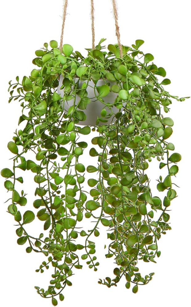 Izbaudiet zaļumu un svaigumu savās mājās bez pastāvīgas laistīšanas. Šie mākslīgie sukulenti ir lieliska alternatīva tradicionālajiem augiem uz plaukta. Vienkārši piestipriniet tos pie sienas vai griestu āķa, un izbaudiet skaisto balta poda un zaļo augu kombināciju. Mākslīgais piekaramais augs piešķirs jūsu interjeram dzīvīgumu pat telpās, kur trūkst dabiskās gaismas. Šis daudzpusīgais mākslīgais augs ļauj realizēt dažādas dekoratīvas idejas visa gada garumā.