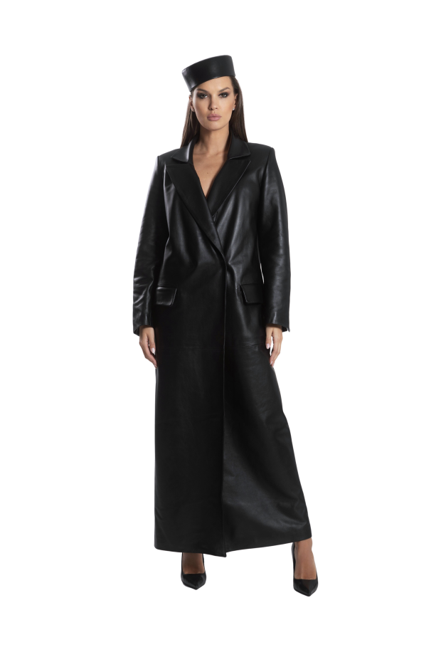 Elegants, pilna garuma ādas mētelis, kas kļūs par klasisku un neaizstājamu garderobes pamatelementu. Pārkāp ierastos noteikumus un piešķir tēlam raksturu – zamšāda ir jaunais melnais. Augstas kvalitātes, roku darbs nodrošina izsmalcinātu izskatu un ilgmūžību. Šis mētelis lieliski papildinās gan elegantu tēlu ar pieguļošiem svārkiem biznesa tikšanās reizē, gan brīvāku ikdienas stilu ar sporta biksēm pastaigā.