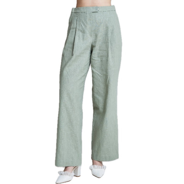 Šīs salvijzaļās lina bikses veidotas ar tīrām priekšējām ielocēm un brīvu, taisna piegriezuma siluetu. Izgatavotas no 100% lina, tās apvieno izteiksmīgu struktūru ar elpojošu, dabisku kustību. Slēpta, regulējama jostasvieta nodrošina nelielu izmēra pielāgojamību, vienlaikus saglabājot tīru, nepārtrauktu ārējo līniju. Pieklusinātais salvijzaļais tonis sasaucas ar minerālu nokrāsām un jūras iedvesmotām tekstūrām – radīts, lai nevainojami kombinētos ar Shell Bra vai Silk Organza korseti.