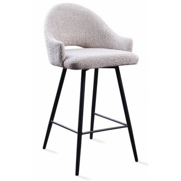 ROSARIO pusbāra krēsls ar ērti izliektu atzveltni. Apvilkts ar mīkstu gobelēnu, ar metāla kājām. Ir pieejamas arī citas auduma izvēles iespējas.
