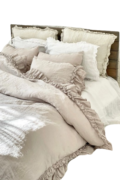 Mūsu lina gultasveļas komplekti ir radīti, lai dalītos dzīves lielākajos priekos un atmiņās, tāpēc tie ir izgatavoti no augstākās kvalitātes 100% tīra franču lina. Jūs acumirklī iemīlēsieties savā lina gultasveļā, sākot no vizuālā izskata līdz pat brīnišķīgajam naktsmieram. Lina auduma komplekti ietver vienu segas pārvalku un divus pieskaņotus spilvendrānu pārvalkus. Visi komplekti ir iepakoti lina auduma uzglabāšanas maisiņā.