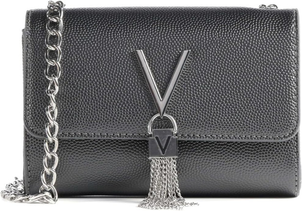 Iepazīstieties ar eleganto Valentino by Mario Valentino Divina somu – ideālu izvēli modernai un izsmalcinātai sievietei. Soma ir izgatavota no augstas kvalitātes materiāliem. 100% polivinilhlorīds (PVC) ar elegantu apdari. Mīksts kokvilnas audums ērtai lietošanai. 100% poliuretāns, kas piešķir somai izturību un stilīgu izskatu. Somai ir ērta spiedpogas aizdare un kompakts izmērs (4 x 11,5 x 17 cm), kas ļauj tajā ērti glabāt nepieciešamākās lietas. Tā ir pieejama trīs elegantās krāsās: melna, zeltaina un sudrabaina, lai viegli pieskaņotu jebkuram tērpam.