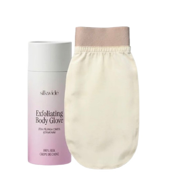 Zīda pīlinga cimds ir radīts, lai maigi attīrītu ķermeni. Tā ir dabīga un ātra metode, lai noņemtu sauso un mirušo ādu, netīrumus un pat paštonējošo līdzekli. 100% zīds Crepe de Chine. Piemērots visiem ādas tipiem. Attīra & Atjauno ādu.