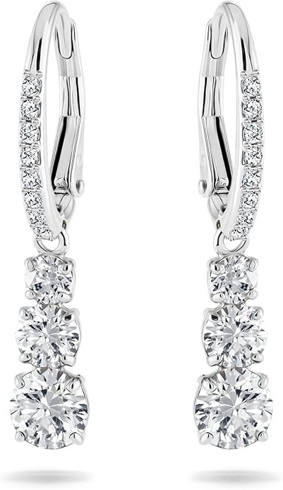 Šie elegantie auskari no Swarovski Attract Trilogy kolekcijas ir veidoti ar izcilību, piedāvājot trīs dažāda izmēra kristālus, kas graciozi nokarājas no mirdzošiem, kristāliem rotātiem stīpiņu auskariem. Klasiskā, tomēr modernā forma padara tos par ideālu rotu jebkuram tērpam un dzīves notikumam. Nevainojama dāvana sev vai mīļotajam cilvēkam.