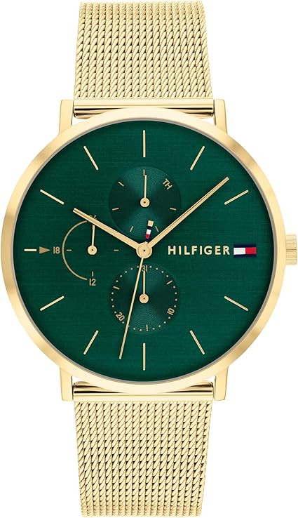 Šis ir izsmalcināts Tommy Hilfiger sieviešu pulkstenis, kas iemieso eleganci kustībā. Aksesuārs apvieno modes izsmalcinātību ar praktiskām funkcijām. Trīs delikāti izstrādāti subciferblati papildina daudzfunkcionālo mehānismu, nodrošinot ne tikai vizuālu pievilcību, bet arī lietderību ikdienā. Izceliet savu stilu ar dinamisku smaragda zaļu ciparnīcu, kas piešķir dzīvīgumu un vieglu ikdienas šarmu. Dzeltenā zelta toņu jonu pārklājuma nerūsējošā tērauda sieta siksniņa nodrošina eleganci un izturību – ideāls līdzsvars starp spēku un grāciju. Korpusa biezums: 7.6 mm / Diametrs: 40 mm. Ūdensizturība: līdz 3 ATM – pasargāts pret lietu un šļakatām, ja korpuss, vainags un stikls ir neskarti.