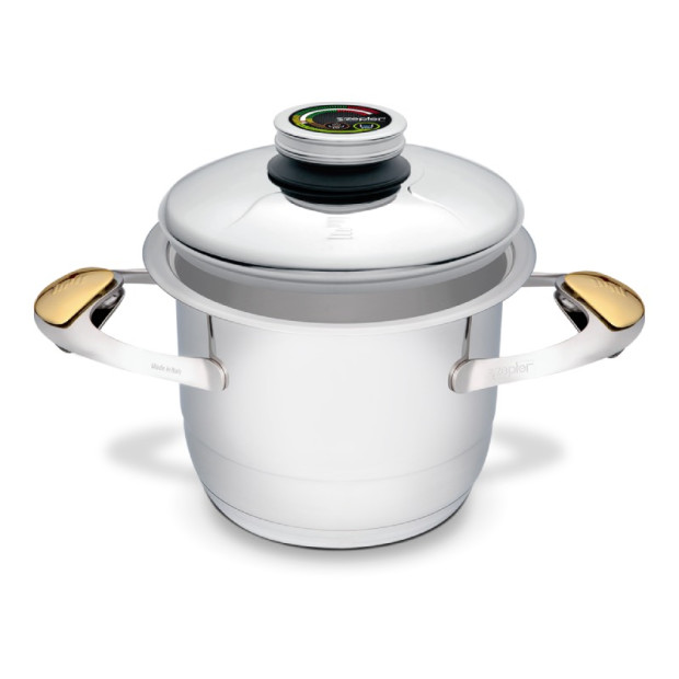 Šis skaisti izstrādātais katls ir Zepter virtuves piederumu kolekcijas īstā zvaigzne. Šis katls ir ideāli piemērots bērnu ēdienkartes vai neliela ēdiena daudzuma sagatavošanai saviem tuvākajiem un mīļākajiem. 2,5 litru katls ir lieliski piemērots arī mērču pagatavošanai.