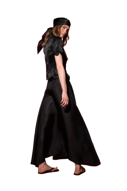 Soil puscaurspīdīgie, kuplie svārki ir relaksēta luksusa meistardarbs. Veido mūžīgi nepiespiestu tēlu, kombinējot tos ar oversized zīda blūzi. Valkā svārkus ar zemiem apaviem izsmalcinātam ikdienas izskatam vai ar augstpapēžu apaviem romantiskam vakaram.